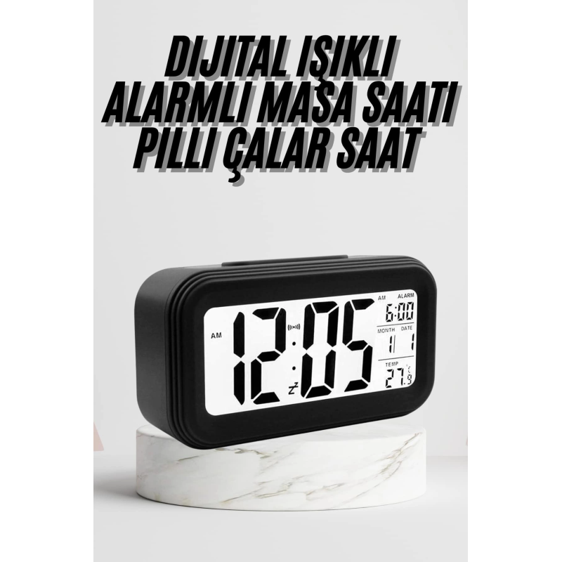 Pratik kullanımı ve şık tasarımıyla öne çıkan bu dijital masa saati, her anı planlamanıza yardımcı olmak için ideal bir çözümdür. Büyük LCD ekranı sayesinde saati, tarihi ve sıcaklık bilgilerini rahatlıkla takip edebilirsiniz. Kararmış ortamlarda dahi ekranın otomatik olarak aydınlanması, saatin her koşulda net bir şekilde görünmesini sağlar. 6 saniye sonra kendiliğinden sönen ışık özelliği, gözlerinizi rahatsız etmeden enerji tasarrufu sağlar.Alarm fonksiyonu sayesinde sabahları rahatça uyanabilir, güne dinç başlayabilirsiniz. Ayrıca, tarih ve ortam sıcaklığı bilgilerini aynı anda görüntüleyebilmeniz, günlük planlamanızı kolaylaştırır. Kompakt ve şık tasarımı, ofis veya ev ortamında rahatlıkla kullanılmasını sağlar.Ürün ölçüleri 4,3 x 15,1 x 7,7 cm olup, 3 adet AA pil ile çalışır (piller dahil değildir). Paket içeriğinde bir adet dijital masa saati bulunmaktadır. Hem es hem de fonksiyonel özellikleri ile hayatınıza pratiklik katacak bu saat, günlük kullanım için mükemmel bir tercihtir.