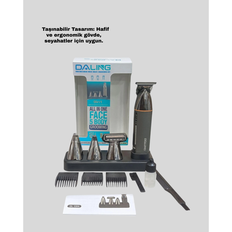 9’u 1 arada çoklu bakım seti, erkek kişisel bakımını daha kolay, hızlı ve profesyonel hale getirmek için tasarlanmış kapsamlı bir çözümdür. Paslanmaz çelik bıçakları sayesinde her kullanımda keskin ve net bir kesim performansı sunar. Güçlü motor yapısı, kalın saç ve sakal yapılarında bile zorlanmadan çalışır.Cihazın 600 mAh lityum pili tam şarj olduğunda yaklaşık 90 dakika kesintisiz kullanım sağlar. USB şarj özelliği sayesinde ofiste, evde veya seyahatlerde rahatlıkla şarj edilebilir. LED ışığı şarj durumunu ve çalışma modunu gösterir.Set içerisindeki farklı başlıklar; saç kesimi, sakal düzenleme, detay kesimi, ense tıraşı ve burun–kulak tüy temizliği gibi pek çok ihtiyacınıza yönelik tasarlanmıştır. Farklı uzunluklar için tercih edebileceğiniz taraklar da pakete dahildir.Başlıkların yıkanabilir olması hijyenik kullanım sunar. Seyahat çantasıyla tüm atları düzenli taşıyabilirsiniz. Hem günlük hem profesyonel kullanım için uygun, kaliteli bir erkek bakım setidir.