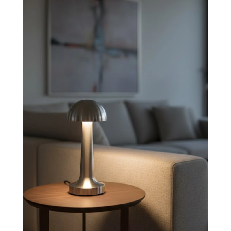 Dokunmatik Mantar Masa Lambası 3 Modlu Işık Şarjlı Kablosuz Led Krom Gövde