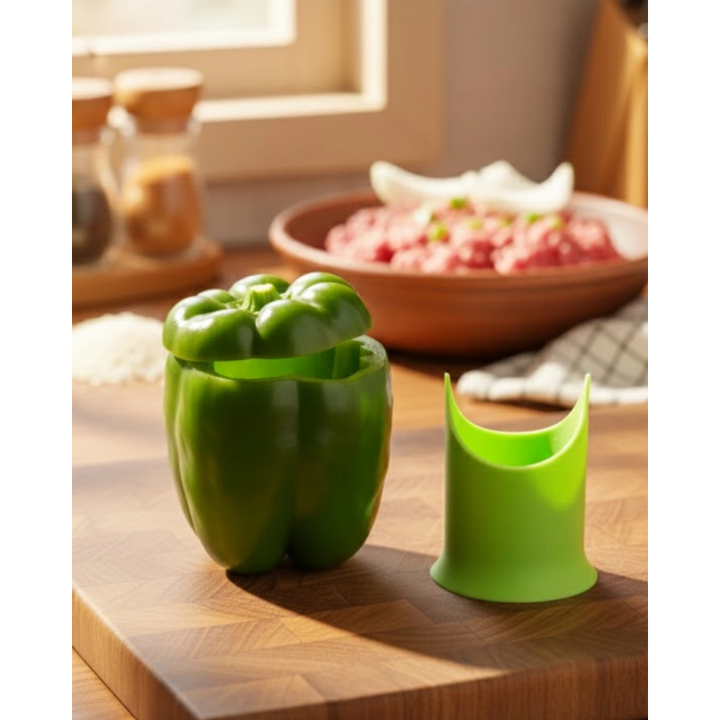 Dolmalık biber ve kabak hazırlığını hızlandıran bu çekirdek temizleyici, mutfakta zamandan tasarruf etmenizi sağlar. Sebzenin içini düzgün ve tamamen boşaltarak dolma, fırın ve kızartma tarifleri için ideal sonuç sunar. Çekirdekler at içinde toplanır, mutfakta dağınıklık oluşmaz. Esnek silikon malzemesi sayesinde güvenle kullanılabilir ve uzun ömürlüdür. Günlük mutfak kullanımı için uygun olan bu at, özellikle seri yemek hazırlığı yapanlar için büyük kolaylık sağlar.