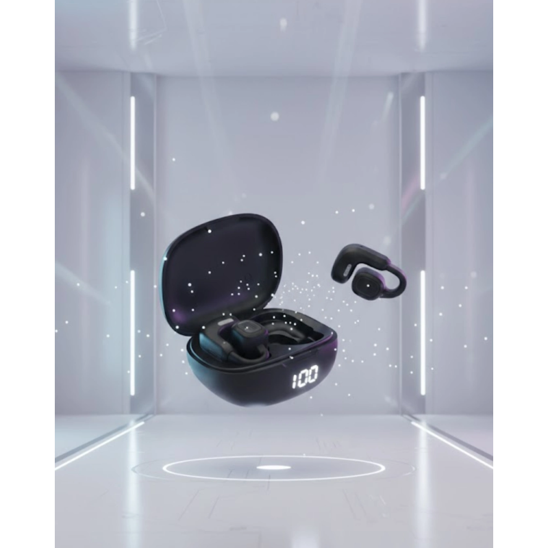 Kulak içi baskı hissi olmadan müzik dinlemek isteyenler için tasarlanan bu kablosuz kulaklık, açık kulak yapısıyla güvenli ve konforlu kullanım sağlar. Spor sırasında çevre farkındalığını korumanıza yardımcı olur. Dual mikrofon sistemi, sesli aramalarda daha net iletişim sunar. Şık ve kompakt şarj kutusu, taşıma kolaylığı sağlar. Hem spor hem de günlük kullanım için uygundur.