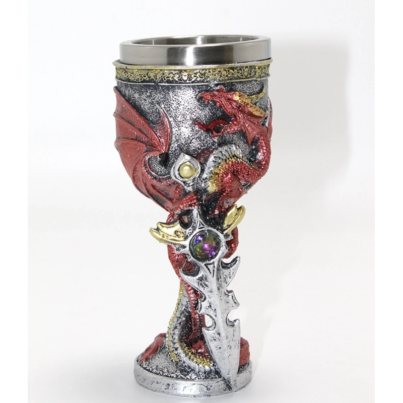 Ejderha Ve Kılıç Temalı 3d Kabartmalı Çelik Kadeh Bardak Alk4373