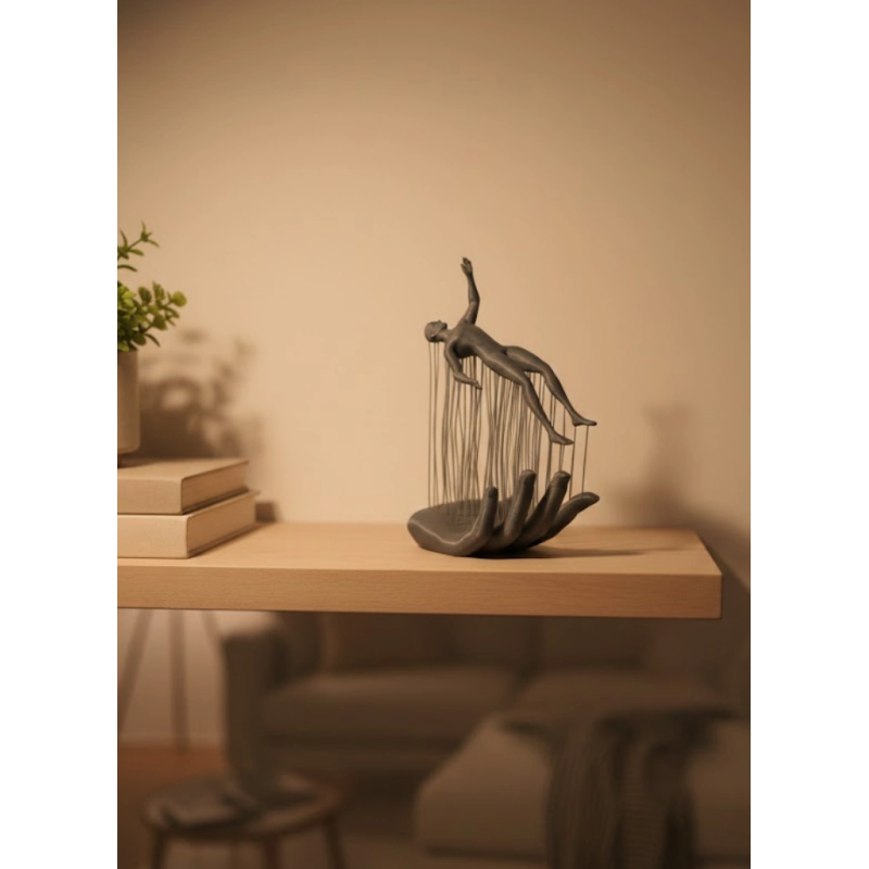 El İnsan Figürü Gri, modern ve sanatsal formu ile yaşam alanlarınıza es bir dokunuş kazandırır. El formu üzerinde yükselen insan figürü, soyut ve anlam yüklü tasarımıyla dikkat çeker. Salon raflarında, kitaplık üzerinde ya da konsol dekorasyonunda kullanıma uygundur. Gri rengi sayesinde hem açık hem koyu dekorasyon stilleriyle kolayca uyum sağlar. Minimal ve modern ev dekorasyonu sevenler için ideal bir biblodur.