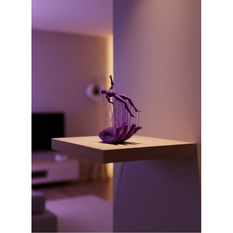 El İnsan Figürü Mor, modern sanat anlayışını dekorasyona taşıyan özgün ve dikkat çekici bir biblodur. İnsan figürünün ince ip detaylarıyla bir el formunun üzerinde süzülür gibi tasarlanması, ürüne hem sanatsal hem de soyut bir karakter kazandırır. Mor rengin güçlü ve sofistike etkisi sayesinde bulunduğu ortamda odak noktası oluşturur.12×18 cm ölçüleriyle salon rafları, TV ünitesi, kitaplık, konsol veya çalışma masası üzerinde rahatlıkla kullanılabilir. Minimal ve modern dekorasyon stilleriyle uyum sağlarken, aynı zamanda klasik alanlara da sanatsal bir dokunuş katar. Dekorasyonda farklılık arayanlar için ideal bir tercihtir.Dayanıklı malzemeden üretilmiş olup uzun süre formunu ve rengini korur. Ev, ofis, stüdyo ve showroom dekorasyonlarında es bir tamamlayıcı olarak kullanılabilir. Kendiniz için özel bir parça arıyorsanız ya da özgün bir hediye alternatifi düşünüyorsanız, bu mor biblo güçlü bir seçenektir.
