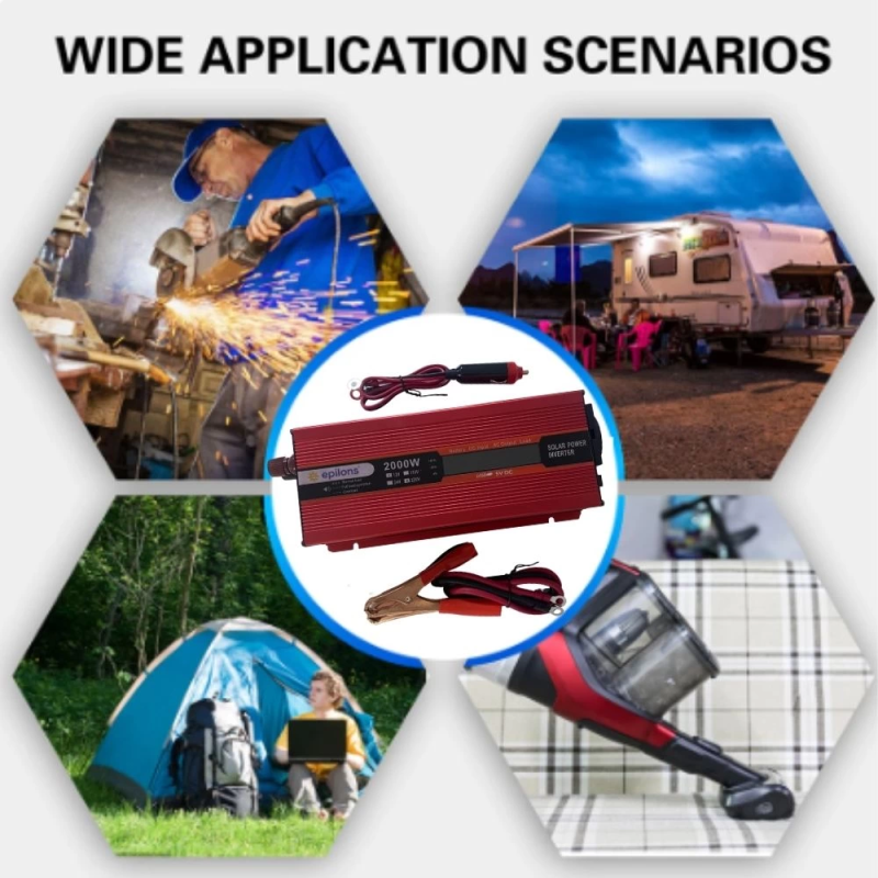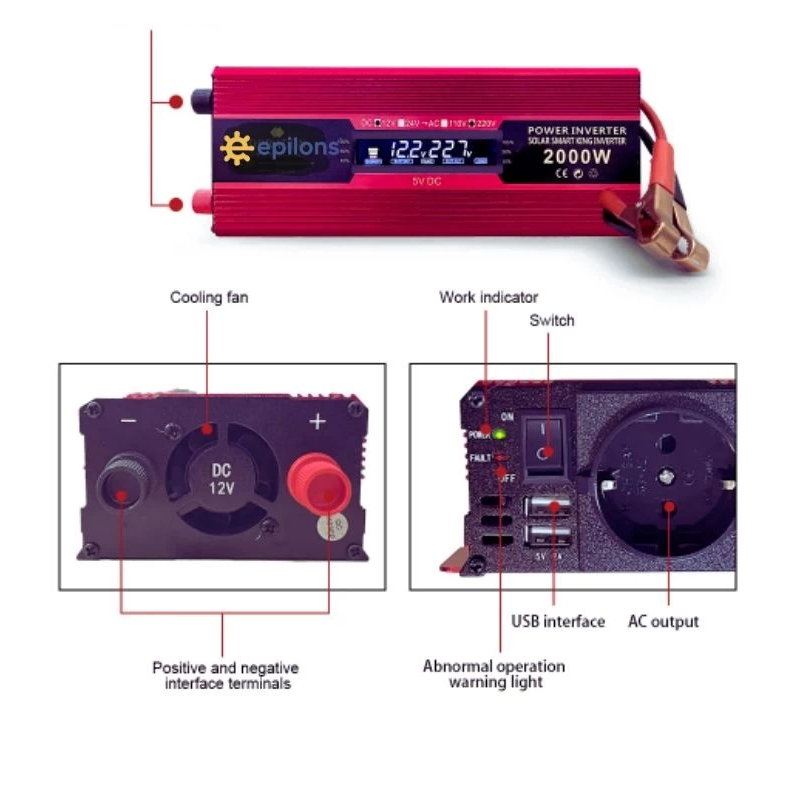 Epilons 12V 2000W Modifiye Sinüs İnverter 220V Dijital Göstergeli- Taşınabilir Güç Kaynağı