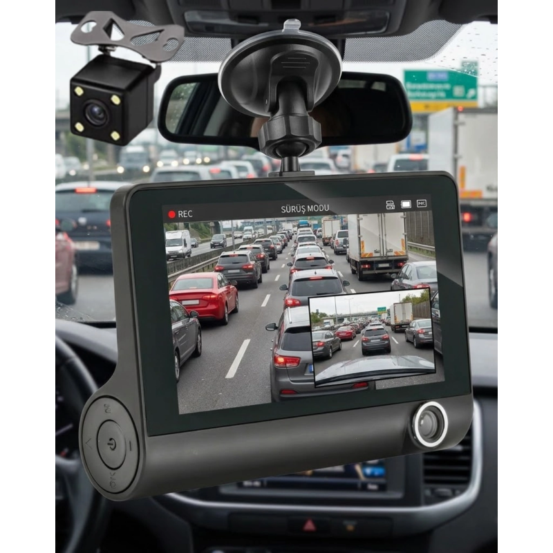 Bu araç içi kamera, gündüz ve gece fark etmeksizin yüksek performanslı kayıt sağlar. Full HD 1080P çözünürlük ile net ve detaylı görüntü elde edilir. Ön ve arka kamera sistemi ile çift yönlü güvenlik sağlanır.170° geniş açı lens daha geniş yol görüntüsü sunar. WDR teknolojisi ışık dengesi sağlar. Gece görüş özelliği karanlık ortamlarda net kayıt sunar.Döngüsel kayıt ve 32 GB microSD desteği sayesinde kesintisiz kullanım sağlar. G-sensör çarpışma anında kaydı kilitler.Park modu ve hareket algılama ile 7/24 araç güvenliği sağlanır. 4 inç LCD ekran anlık görüntü kontrolü sunar.Araç kamerası, oto güvenlik kamerası ve çift lens araç DVR kategorisinde güçlü bir üründür.