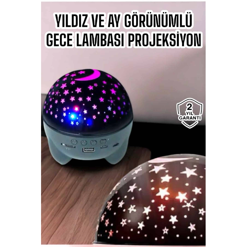 Gece Lambası Projeksiyon Görünümlü Şarjlı Yıldızlı Yuvarlak
