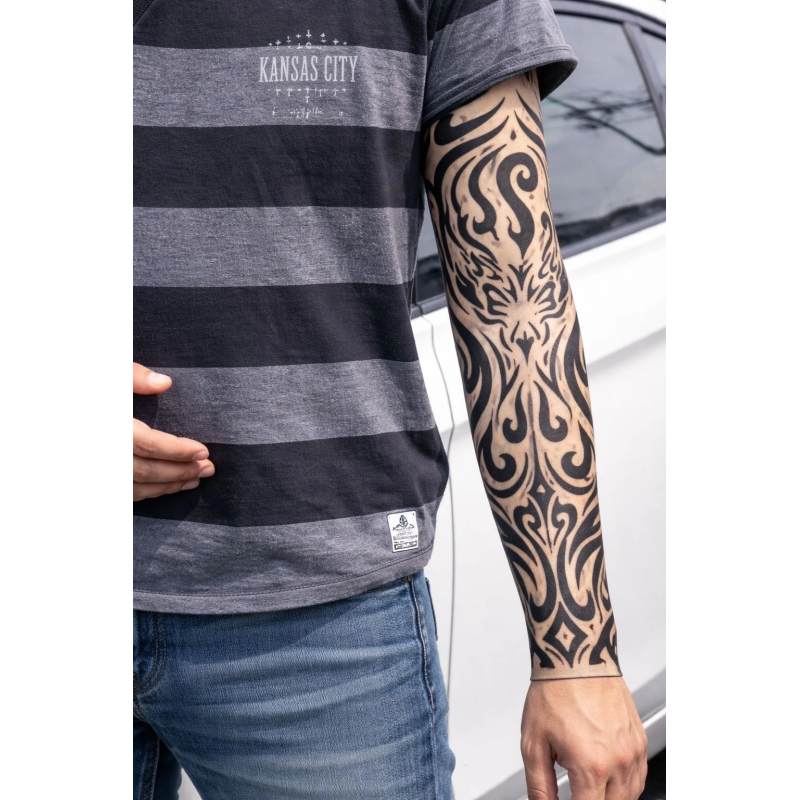 Dövme yaptırmadan tarzınızı öne çıkarın Model 11, kol ve bacak için tasarlanmış, yüksek kaliteli likralı kumaştan üretilmiş 3D baskılı geçici dövme çorap setidir. Set, 2 çoraptan oluşur, sağ ve sol kol veya bacak için uygundur.