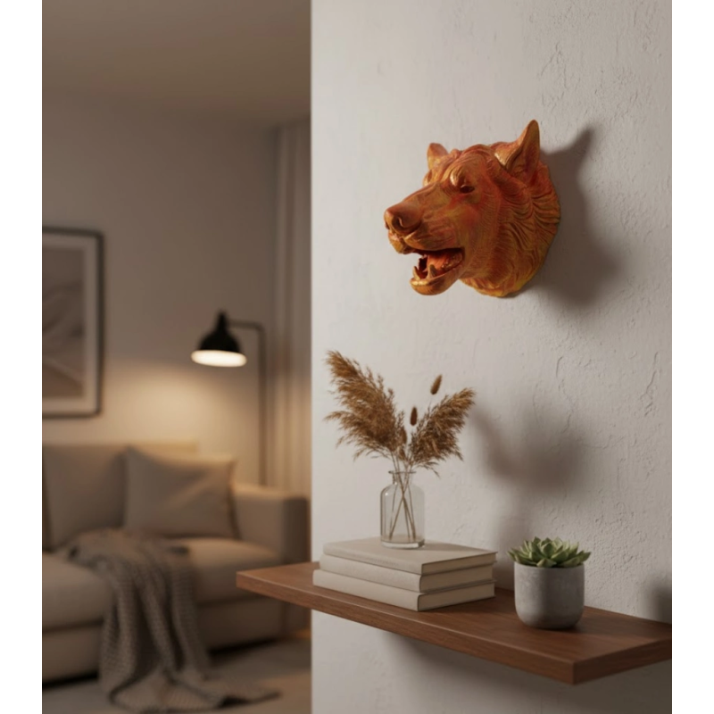 Gold Renk 3d Kurt Başı Duvar Dekoru