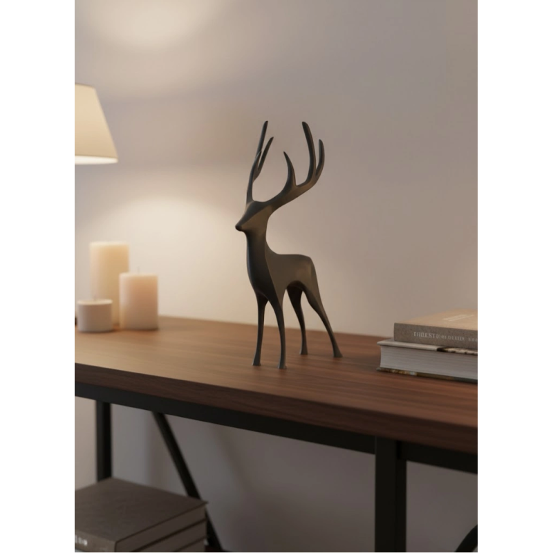 Dekoratif Geyik Figürü Gri, sade ama etkileyici tasarımıyla yaşam alanlarınıza modern bir dokunuş kazandırır. 12×24 cm ölçüsü, ürünü hem ön planda sergilemek hem de raf dekorasyonunda denge unsuru olarak kullanmak için ideal hale getirir. Gri rengi sayesinde açık ve koyu tonlu mobilyalarla uyum içinde kullanılabilir.Salon raflarında, kitaplık üzerinde veya masa üstünde konumlandırıldığında mekâna düzenli ve es bir görünüm kazandırır. Özellikle sıcak ışık kullanılan loş salon ortamlarında figürün formu daha belirgin hale gelir ve dekorasyona derinlik katar. Minimalist çizgileri sayesinde göz yormaz, mekânın genel havasını bozmadan tamamlayıcı rol üstlenir.Kolay temizlenebilir yüzeyi sayesinde bakım gerektirmez. Günlük dekorasyonun yanı sıra özel günlerde de ortamın şıklığını artırır. Modern ev dekorasyonu arayanlar için hem kullanışlı hem de görsel olarak güçlü bir dekoratif üründür.