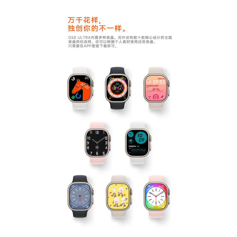 GS Ultra 8 Max, kullanıcıların beklentilerini karşılamak için tasarlanmış şık ve fonksiyonel bir akıllı saattir. Android 5.0 ve IOS 10.0 veya üzeri işletim sistemleriyle uyumlu olan bu akıllı saat, 2.05 inç ekran boyutu ve 420*485 piksel ekran çözünürlüğü ile net ve canlı bir ekran deneyimi sunar.
