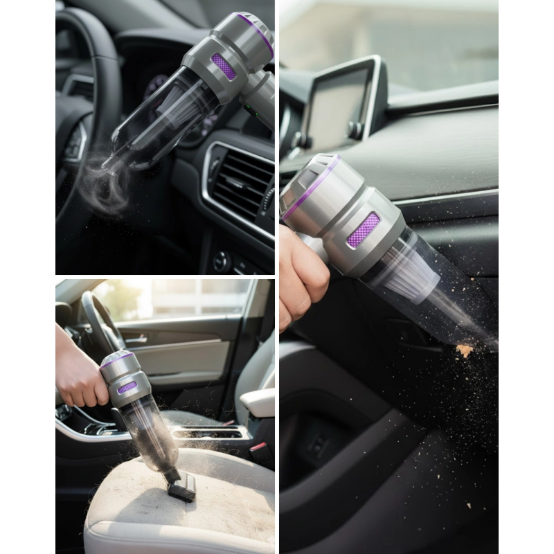 Şarjlı el tipi süpürge, yüksek emiş gücü ve çok yönlü kullanım avantajı sunar. Araç içi temizlikten ev kullanımına kadar geniş alanlarda etkilidir. Hafif yapısı ile taşıması kolaydır.3 kademeli güç ayarı, enerji tasarrufu ve performans dengesi sağlar. Üfleme fonksiyonu ile dar alanlar rahatça temizlenir. Vakum paketleme desteği ekstra kullanım alanı sunar.