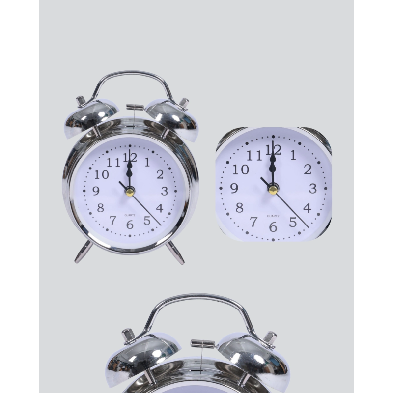 Gümüş Renkli Sessiz Işıklı Dekoratif Masa Üstü Çalar Saat Alarmlı