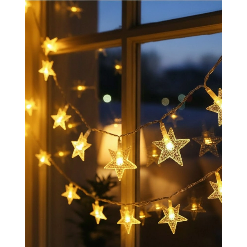 Günışığı Beyaz Yıldız Işık Zinciri 5 Metre Enerji Tasarruflu Dekor
