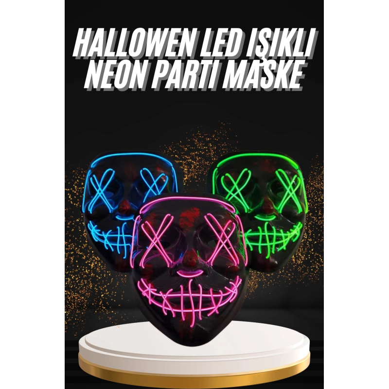 Hallowen Parti Maskesi Neon Led Işıklı Maske 3 Modlu Cadılar Bayramı Maskesi