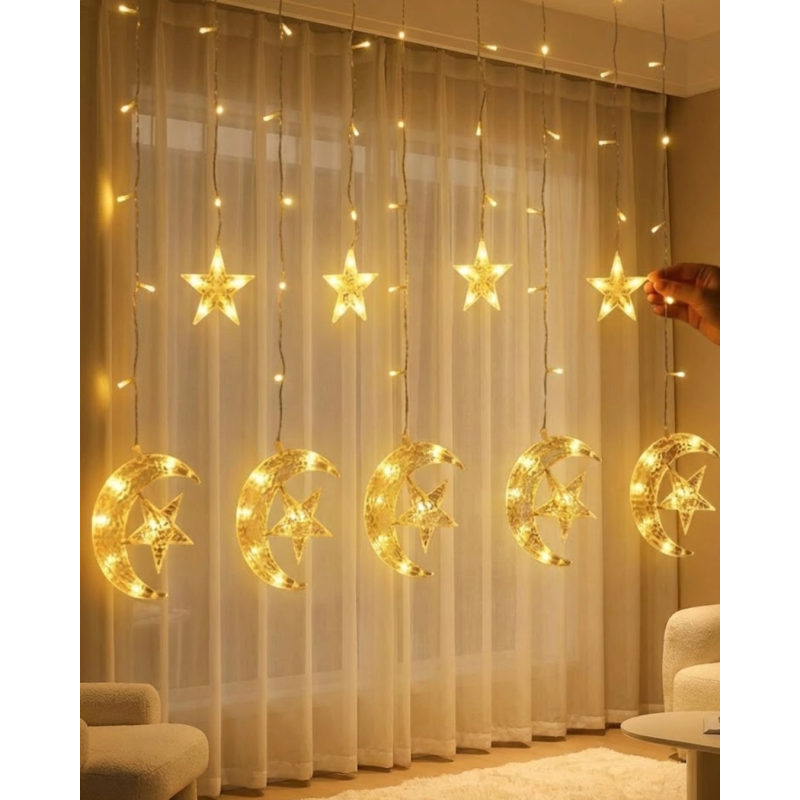 Hilal Yıldız Perde Led Işık 2 Modlu Sıcak Beyaz Dekoratif Aydınlatma