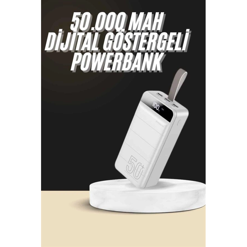 Güçlü performansı ve yüksek kapasiteli yapısıyla öne çıkan bu 50000mAh powerbank, mobil yaşamınıza kesintisiz enerji sunar. Geniş cihaz uyumluluğu sayesinde iOS lightning, Android micro USB ve Type-C girişleri ile pek çok farklı cihazı kolayca şarj edebilirsiniz. Aynı anda üç cihazı destekleyen 3 USB çıkışı (5V/2.1A) sayesinde arkadaşlarınızla paylaşabilir veya tüm cihazlarınızı tek bir noktadan şarj edebilirsiniz.Zaman kazandıran hızlı şarj özelliği, yoğun tempoda bile sizi yarı yolda bırakmaz. Üzerindeki dijital gösterge, şarj seviyesini anlık olarak takip etmenizi sağlar. Ayrıca LED ışığı sayesinde acil durumlarda pratik bir aydınlatma çözümü sunar. Taşıma kolaylığı sağlayan silikon askısı ise dış mekan kullanımlarında işlevsellik katar. PD3.0 çift yönlü hızlı şarj desteği, hem powerbank’inizi hem de bağlı cihazları daha kısa sürede enerjiyle buluşturur.Akıllı şarj teknolojisi, cihazlarınızın pil ömrünü koruyarak güvenli kullanım sağlarken, yenilikçi çip sistemiyle aşırı ısınma gibi risklerin önüne geçer. Siyah ve beyaz renk alternatifleriyle sunulan bu model, yüksek kapasite ve güvenliği bir araya getirerek günlük hayatın vazgeçilmezlerinden biri haline gelir.