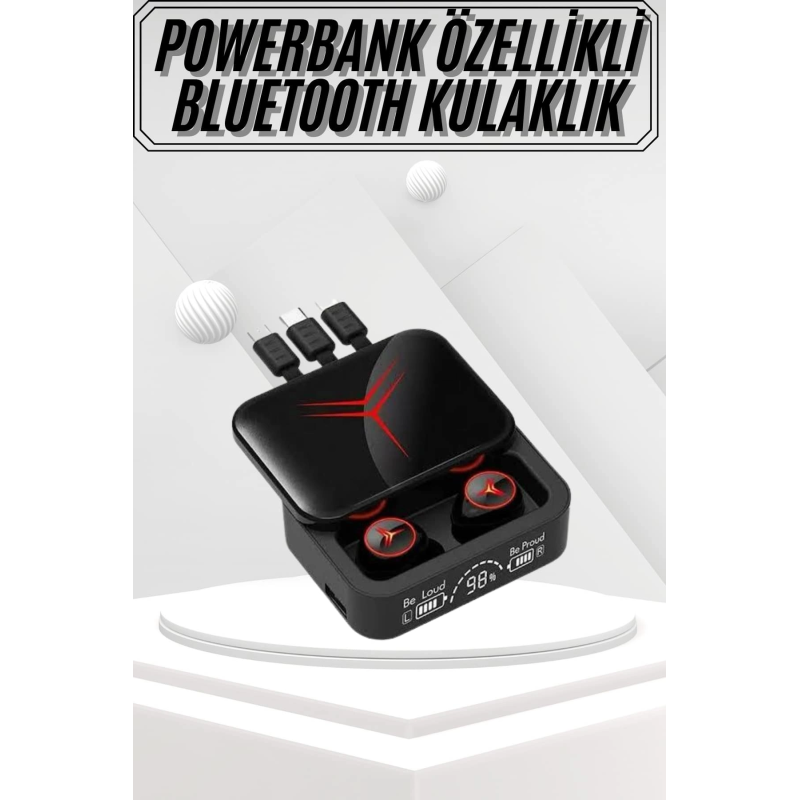 Kablosuz Bluetooth Kulaklık – Yüksek Ses Kalitesi ve TaşınabilirlikBu kulaklık, müzik dinleme ve çağrı yapma deneyiminizi zirveye taşıyan şık ve fonksiyonel bir aksesuardır. Kablosuz Bluetooth teknolojisi sayesinde, kablolardan kurtulup tamamen özgür bir kullanım sunar. Hareket halindeyken rahatlıkla müzik dinleyebilir veya aramalarınızı yanıtlayabilirsiniz.Gelişmiş Gürültü Engelleme TeknolojisiDışarıdan gelen rahatsız edici sesleri engelleyen aktif gürültü engelleme özelliği ile, müziğinizin veya aramanızın her anını net bir şekilde duyabilirsiniz. Gürültü engellemeyle birlikte, ses kalitesinin bozulmasını önleyerek daha pürüzsüz bir ses deneyimi elde edersiniz.Powerbank Özelliği ile 2’si 1 Arada KullanımKulaklığınızın entegre powerbank özelliği, müzik dinlerken ya da telefon görüşmesi yaparken cihazınızı aynı anda şarj etmenizi sağlar. Böylece şarj bitmesi derdi olmadan uzun süre keyifle kullanabilirsiniz.Uzun Pil Ömrü ve Hızlı Şarj ÖzellikleriKulaklığınız, üstün pil kapasitesi ile kesintisiz müzik dinleme veya telefon görüşmesi yapma imkânı sunar. Şarj etme işlemi ise oldukça hızlıdır, böylece cihazınızı kısa süre içinde kullanıma hazır hale getirebilirsiniz.Ergonomik Tasarım ve KonforKulak içi tasarımı ve cilt dostu silikon kulak kapakları ile uzun süreli kullanımlarda bile rahatlık sağlar. Kulaklık, farklı kulak yapılarına uyum sağlamak için çeşitli kulak tıkaçlarıyla birlikte gelir, böylece herkes için mükemmel bir uyum ve konfor sunar.Kolay Eşleştirme ve KullanımBluetooth teknolojisi ile hızlı eşleştirme özelliği, cihazınızı birkaç saniye içinde bağlamanızı sağlar. Ayrıca kulaklık üzerinde yer alan dokunmatik kontrol paneli ile müzik dinleme, arama yanıtlama ve ses ayarlarını kolayca yapabilirsiniz.Taşınabilir ve ŞıkHafif ve kompakt tasarımı sayesinde her an yanınızda taşıyabilirsiniz. Şıklığı ve zarif görünümü ile sadece fonksiyonel değil, aynı zamanda şık bir aksesuar olarak da öne çıkar.