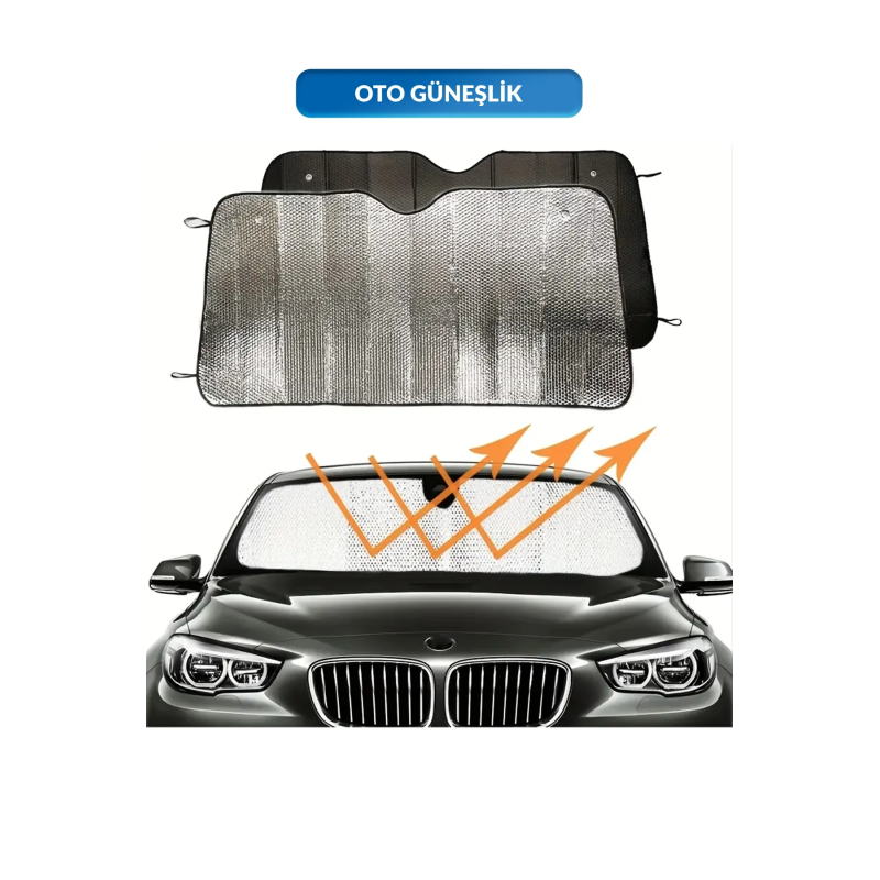 Yazın kavurucu sıcağında aracınızın içinin aşırı ısınmasını önleyen bu ön cam güneşlik, alüminyum yansıtıcı yüzeyi sayesinde güneş ışınlarını maksimum oranda geri yansıtır. Direksiyon, torpido ve koltuklarınızı korur. Vantuzlu sistemi ile saniyeler içinde cama takılır, çıkarılır. Katlanabilir tasarımı sayesinde çantanızda, torpidonuzda veya koltuk altında yer kaplamadan saklanabilir.
