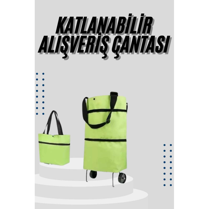 Katlanabilir Tekerlekli Çantalı Çarşı Pazar Arabası Alışveriş Çantası Piknik Çantası