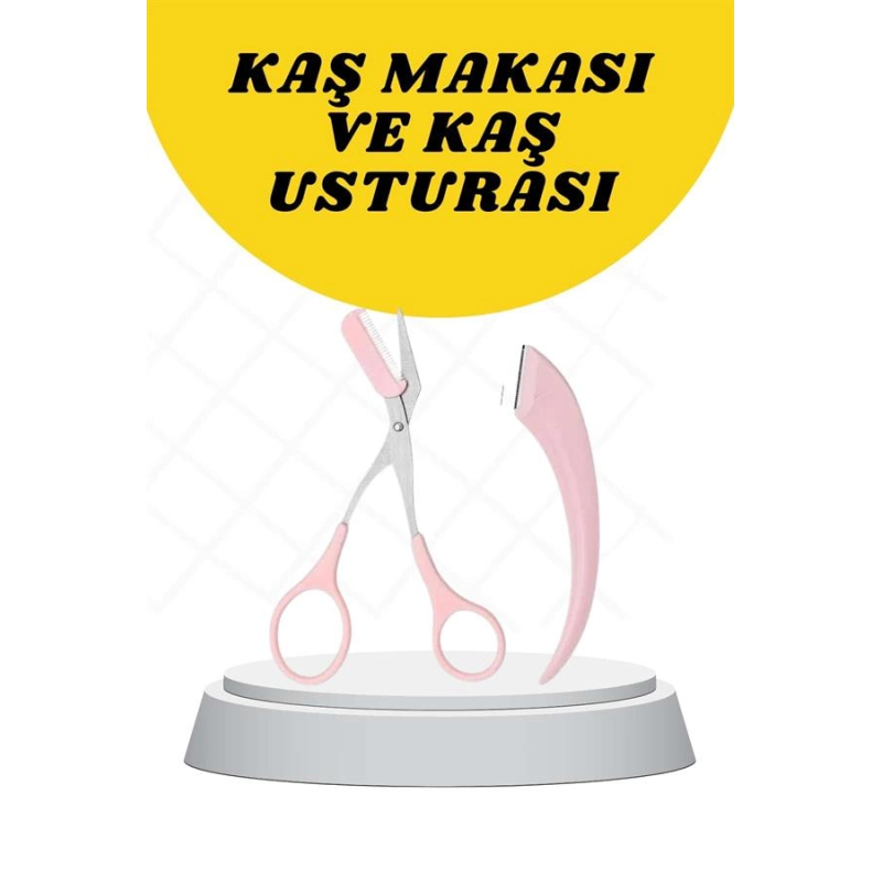 Kavisli Kaş Düzeltici Seti Kaş Makası Ve Kaş Usturası Paslanmaz Çelik Bıçaklı