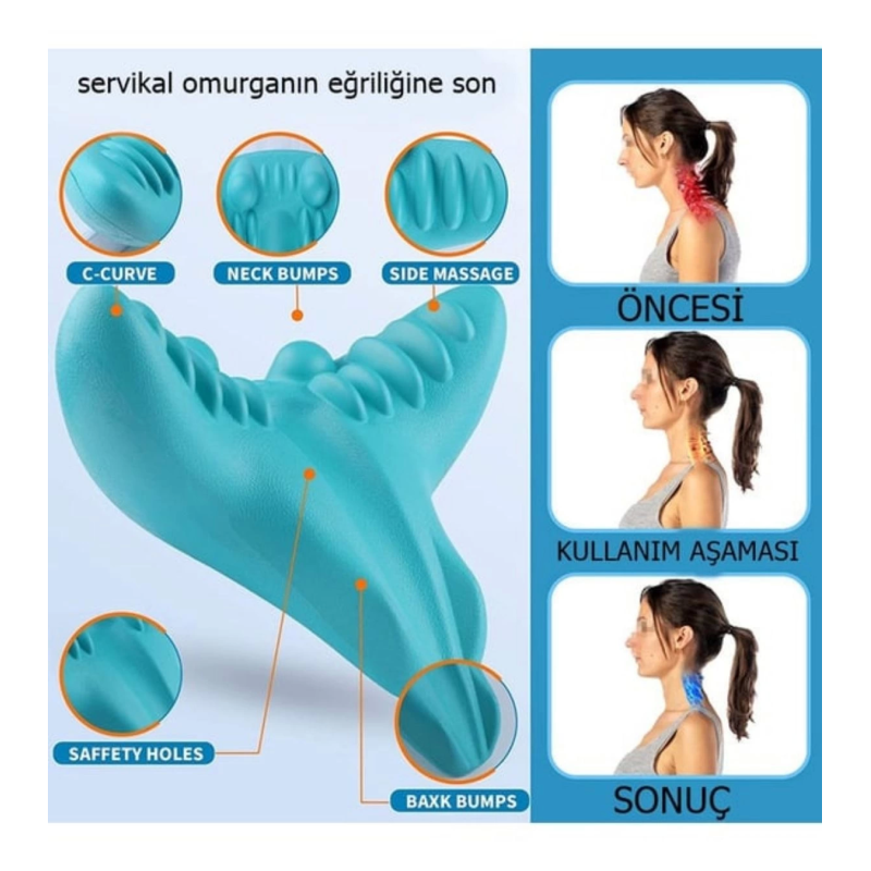 Dik duruş desteği sağlayan, boyun hörgücünü önlemeye yardımcı özel tasarımıyla öne çıkar. Kamburluğu engeller, servikal omurga desteği sunar ve boyun ağrılarını hafifletir. Masaj etkili yüzeyi sayesinde kasları gevşetir ve rahatlama sağlar.
