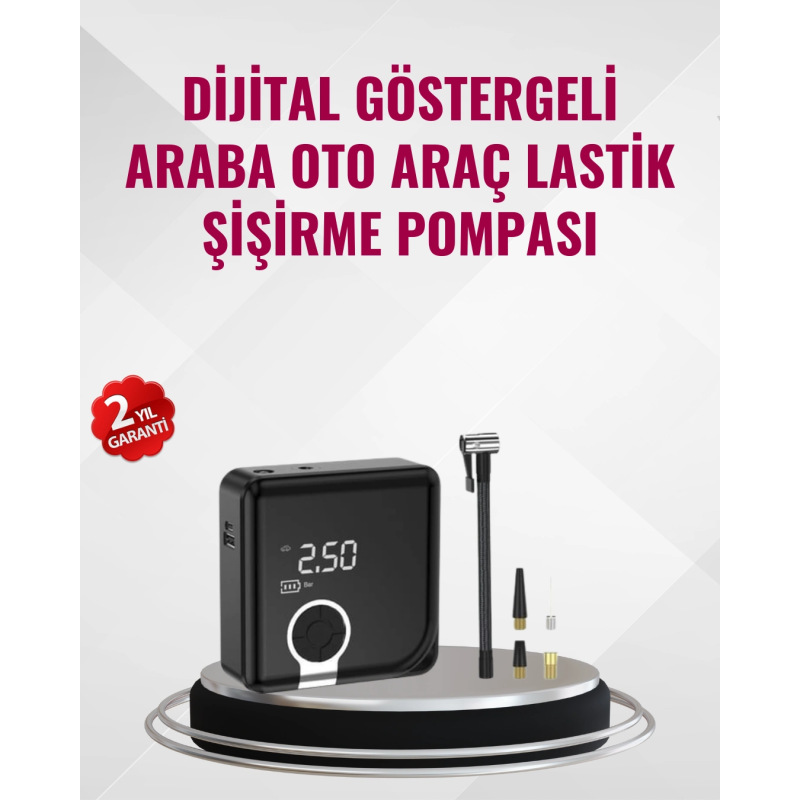 Taşınabilir akıllı hava kompresörü, güçlü motoru ve yüksek basınç kapasitesi ile her araç sahibinin ihtiyaçlarını karşılayacak şekilde tasarlanmıştır. Kompakt ve hafif yapısı sayesinde aracınızda az yer kaplar, acil durumlarda büyük kolaylık sağlar.150 PSI basınç kapasitesine sahip bu cihaz, otomobil lastiklerinden bisiklet ve motosiklet lastiklerine kadar geniş bir kullanım alanı sunar. Ayrıca toplar, şişme yataklar ve kamp malzemeleri için de kullanılabilir. Dijital ekran göstergesi sayesinde basınç değerlerini hassas bir şekilde takip edebilirsiniz. Önceden ayarlanan basınca ulaşıldığında cihaz kendiliğinden kapanarak güvenli kullanım sağlar.6000 mAh bataryası güçlü performans sunar, tam şarjla dört lastiği şişirebilir. Type-C şarj özelliği ile cihazınızı kısa sürede şarj edebilir ve tekrar kullanabilirsiniz. LED ışıkları gece veya düşük ışıklı ortamlarda kullanım kolaylığı sunarken, SOS ışıkları acil durumlarda güvenliğinizi artırır.Bu cihaz, pratikliği ve fonksiyonelliği ile sadece sürücüler için değil, aktif yaşam tarzını benimseyen herkes için ideal bir seçimdir.