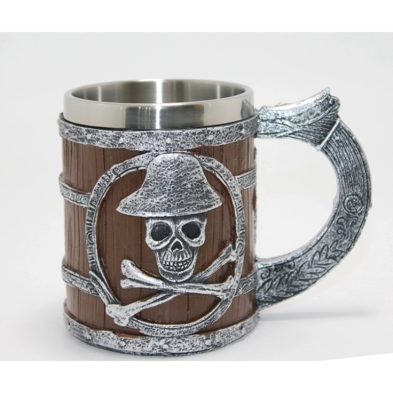 Korsan Temalı Ahşap Görünümlü 3d Kabartmalı Çelik Kupa Bardak Alk4372