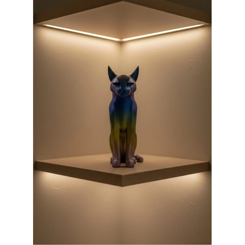 Koyu Rainbow Kedi biblo, dekorasyonda farklılık arayanlar için özel bir tasarıma sahiptir. Renk geçişleri ışığa göre değişen görsel bir etki sunar ve bulunduğu ortama hareket katar. 18×25 cm boyutlarıyla ne çok büyük ne de küçük olup ev içinde rahatça konumlandırılabilir. Salon, ofis veya çalışma alanlarında şık ve modern bir atmosfer oluşturmak isteyenler için ideal bir dekoratif objedir.