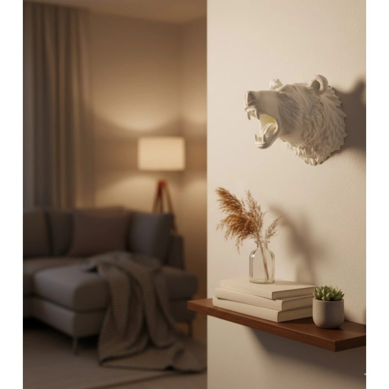 Beyaz 3D ayı başı duvar heykeli, dekorasyonuna modern, etkileyici ve güçlü bir dokunuş eklemek isteyenler için özel olarak tasarlanmış bir üründür. 25x19 cm ölçülerindeki bu dekoratif figür, beyaz renginin sadeliği ve şıklığı ile hem modern hem de minimal dekorasyon tarzlarına mükemmel uyum sağlar. Ürünün detaylı yüz hatları dikkat çekici bir gerçekçilik sunarken, 3 boyutlu kabartı yapısı duvarda güçlü bir gölge etkisi oluşturur.Hafif ve sağlam yapısı sayesinde kolayca duvara monte edilebilir. Odanın odak noktası olması için tek başına kullanılabileceği gibi, galeriler, çalışma odaları, genç odaları, ofisler veya tasarım ağırlıklı ortamlar için de harika bir tamamlayıcıdır. Ayı figürü; güç, cesaret ve koruyucu enerji ile ilişkilendirildiği için manevi anlamda bir sembol arayan kullanıcıların da ilk tercihleri arasında yer alır.Es tasarımı sayesinde fotoğraf çekimleri, video çekim alanları, stüdyo dekorasyonları veya mağaza vitrinlerinde de çok şık bir görünüm sağlar. Beyaz rengi, her renkteki duvar ile uyumlu olduğu için dekorasyon seçeneklerini genişletir.Ayrıca özel günler için benzersiz bir hediye seçeneğidir. Şık, farklı ve anlamı olan dekoratif objeler sevenler için ideal bir alternatiftir.