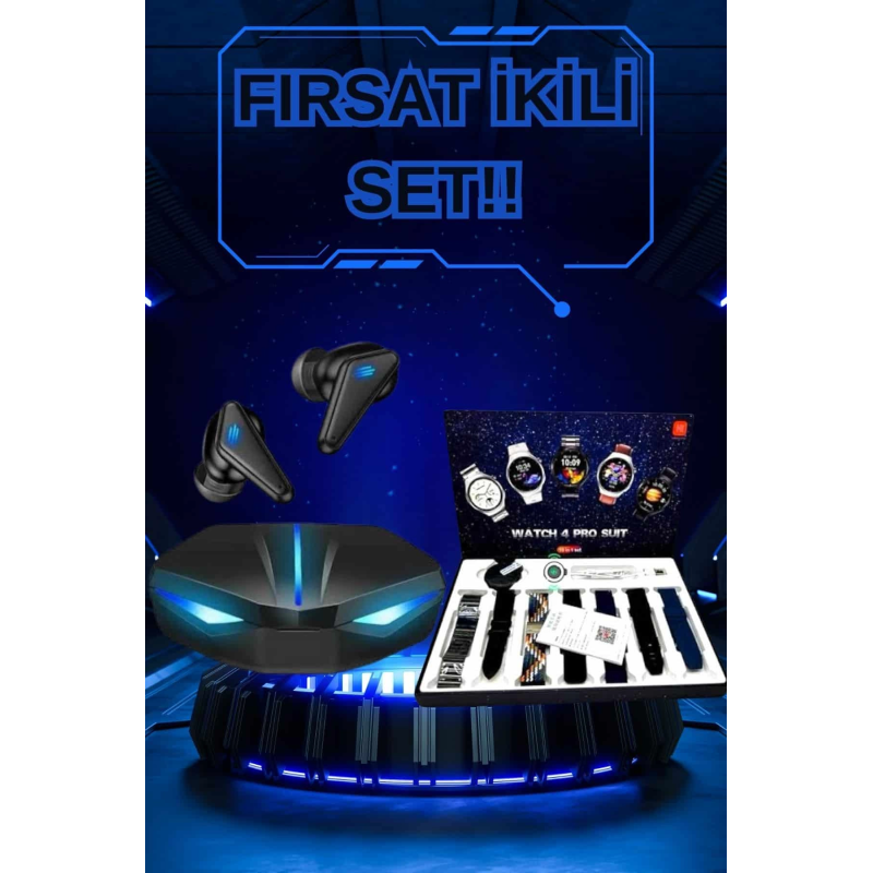 KULAKLIK:K55 Bluetooth kulaklık, hem es hem de teknik özellikleriyle kullanıcılarına üstün bir deneyim sunan bir cihazdır. 105 dB hassasiyet seviyesine sahip olan bu kulaklık, güçlü ve net bir ses performansı sağlar. Siyah renkli tasarımı, modern ve şık bir görünüm sunarak dikkat çeker.Pasif gürültü engelleme özelliği, dış ortam seslerini minimuma indirir ve bu sayede müzik dinlerken veya telefon görüşmeleri yaparken net bir ses deneyimi sunar. 20 Hz - 20 kHz frekans aralığı, geniş bir ses yelpazesine ulaşmanıza olanak tanır; düşük baslardan yüksek tizlere kadar dengeli bir ses kalitesi sunar. LED aydınlatma tasarımı, ürünün hem oyuncular hem de günlük kullanıcılar için çekici bir seçenek olmasını sağlar.Kulaklık, su sıçramalarına karşı dayanıklı IPX5 koruma sınıfına sahiptir, bu da spor yaparken veya hafif yağmur altında bile güvenle kullanılabileceği anlamına gelir. Dokunmatik kontrol paneli, çağrı yanıtlama, müzik değiştirme ve ses ayarlama gibi işlemleri kolayca yapmanıza imkan tanır. Bu özellik, kullanıcıların eller serbest bir şekilde cihazı kontrol etmesini sağlar ve büyük bir kullanım kolaylığı sunar.Kulaklığın her biri yalnızca 8 gram ağırlığındadır, bu da uzun süreli kullanımlarda bile konfor sağlar. Şarj kutusu, 64 gram ağırlığıyla oldukça hafif ve taşınabilir bir yapıya sahiptir. Bluetooth 5.0 teknolojisi, hızlı ve kararlı bir bağlantı sağlar, aynı zamanda düşük enerji tüketimi sayesinde pil ömrünü optimize eder.K55 kablosuz LED ışıklı Bluetooth kulaklık, kullanıcı dostu özellikleri, şık tasarımı ve dayanıklılığıyla hem oyun oynarken hem de günlük kullanımda mükemmel bir seçimdir.AKILLI SAAT:Günlük aktivitelerinizi takip etmek ve sağlıklı yaşam hedeflerinize ulaşmak için tasarlanan bu akıllı saat, hayatınızı kolaylaştıran birçok özellikle donatılmıştır. Adımsayar özelliği, hareketlerinizi hassas bir şekilde kaydederek aktif kalmanıza destek olurken, sesli görüşme fonksiyonu sayesinde telefonunuza dokunmadan çağrılarınızı yanıtlayabilir ve konuşmalarınızı rahatça gerçekleştirebilirsiniz. Gelen bildirimleri, alarmları ve önemli uyarıları kaçırmamanız için titreşim fonksiyonu devreye girer, böylece her zaman bağlı kalırsınız. GPS özelliği ile konumunuzu hassas bir şekilde belirleyerek, navigasyon ihtiyaçlarınızı en pratik şekilde karşılar. Güçlü 300-400 mAh batarya kapasitesi, uzun süreli kullanım imkanı sunarak gün boyu size eşlik eder. İthalatçı garantisi altında 2 yıl boyunca güvenle kullanabileceğiniz bu saat, uyku takibi özelliğiyle uyku düzeninizi analiz eder ve daha kaliteli bir uyku için gerekli adımları atmanıza yardımcı olur. Dahili nabız sensörü sayesinde kalp atış hızınızı sürekli olarak takip edebilir ve sağlık verilerinizi kontrol altında tutabilirsiniz. Bu akıllı saat, hem teknoloji hem de sağlık açısından hayatınızı zenginleştiren bir deneyim sunar.