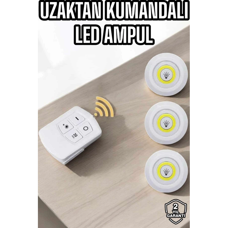 Led Lamba 3'lü Uzaktan Kumandalı Yapışkanlı Beyaz Işık