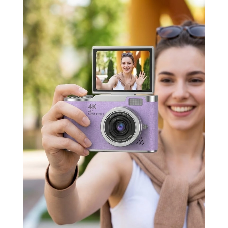 Profesyonel vlog kamera, içerik üreticileri ve kaliteli çekim yapmak isteyen kullanıcılar için geliştirilmiş yüksek performanslı bir cihazdır. 48 megapiksel fotoğraf çekim özelliği sayesinde son derece net ve detaylı görüntüler elde edebilirsiniz. 4K video kayıt özelliği ile profesyonel kalitede videolar çekebilir ve içeriklerinizi bir üst seviyeye taşıyabilirsiniz.Flip screen yani dönebilir ekran özelliği, vlog çekimleri için büyük kolaylık sağlar. Kamerayı kendinize çevirerek çekim yapabilir ve кадrajınızı anlık olarak kontrol edebilirsiniz. Bu da özellikle YouTube ve sosyal medya içerik üreticileri için önemli bir avantajdır.Autofocus sistemi, çekim sırasında hızlı ve doğru netleme yak görüntü kalitesini artırır. Hareketli sahnelerde bile netlik korunur. Dahili flash özelliği ise düşük ışık koşullarında çekim yapmayı mümkün hale getirir.Kompakt ve hafif tasarımı sayesinde her yere kolayca taşınabilir. Günlük kullanım, seyahat ve profesyonel çekimler için uygundur. Ergonomik yapısı sayesinde uzun süreli kullanımlarda bile konfor sağlar.Dayanıklı malzeme yapısı sayesinde uzun ömürlü kullanım sunar. Kullanıcı dostu arayüzü ile kolay kullanım imkanı sağlar.Bu kamera, hem amatör hem de profesyonel kullanıcılar için ideal bir çözümdür. Yüksek performansı, taşınabilirliği ve modern özellikleri ile dikkat çeker.