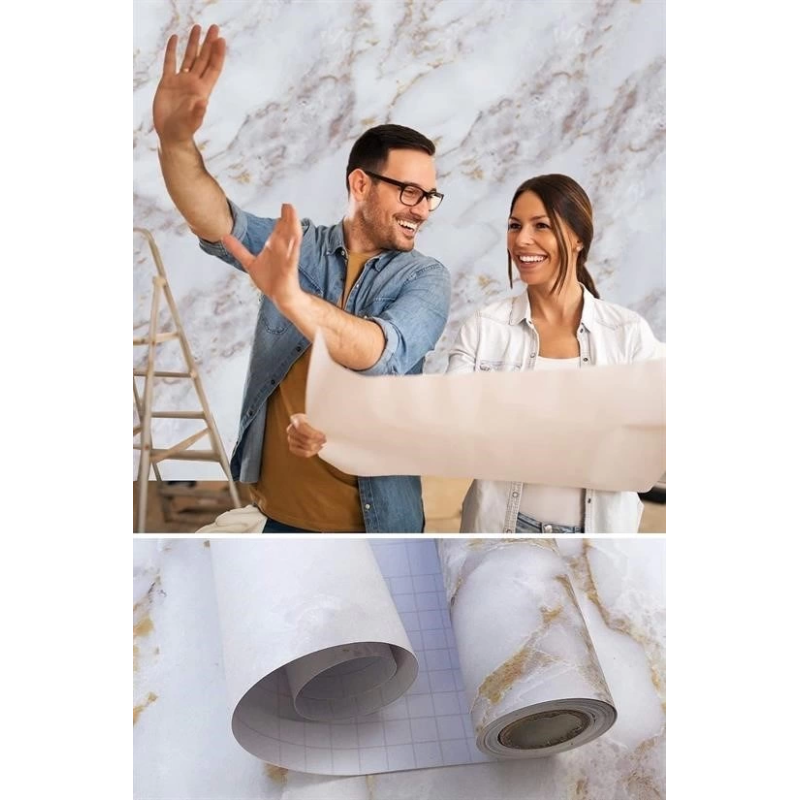 Mermer desenli kaplama duvar kağıdı yapışkanlı folyo ürünü su geçirmez ve ateş almaz özelliğe sahiptir