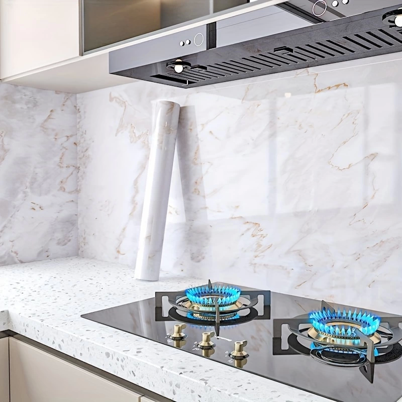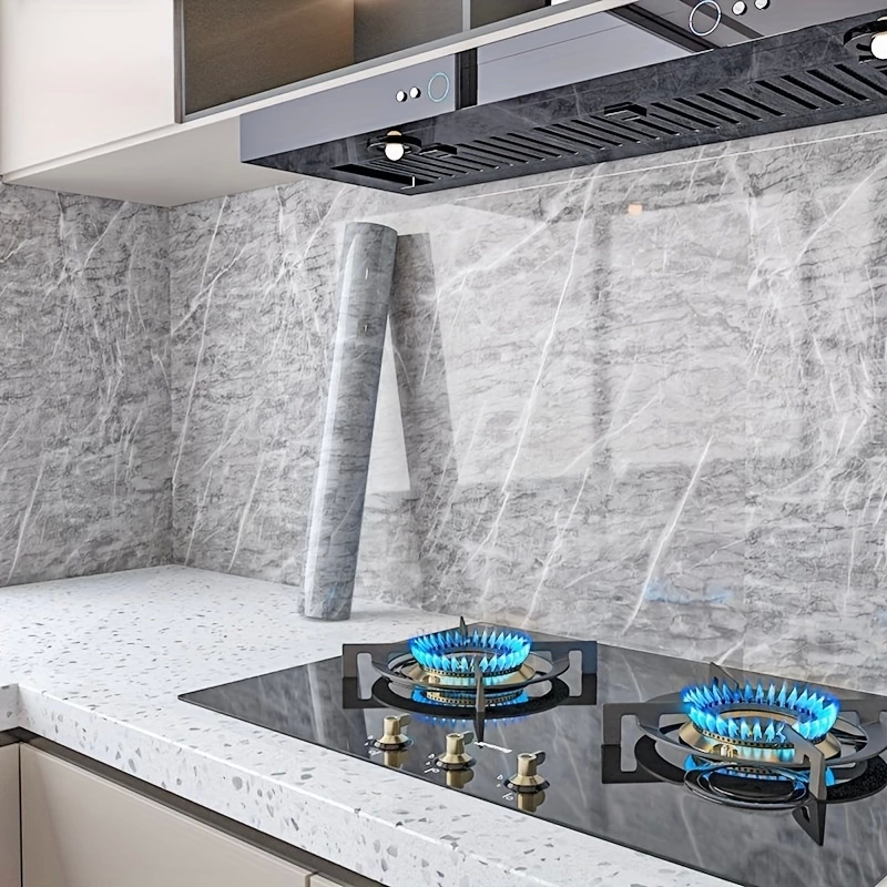 Mermer Desenli Mutfak Duvar Kağıdı Sticker - 5mx60cm Su Geçirmez, Yağa Dayanıklı, Yüksek Sıcaklığa Dayanıklı Tezgah, Dolap, Ocak Yenileme Folyosu T04