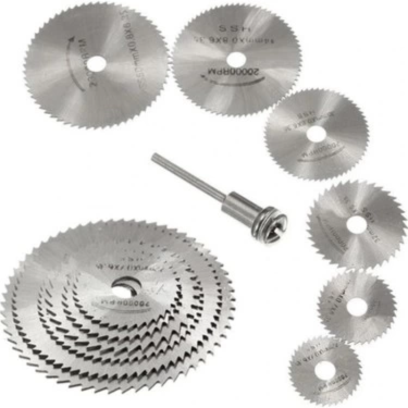 Yüksek hızlı, çelik bıçak ve mandrel seti, alüminyum, pirinç, bakır, ahşap ve plastikte ince hassas kesimler için idealdir