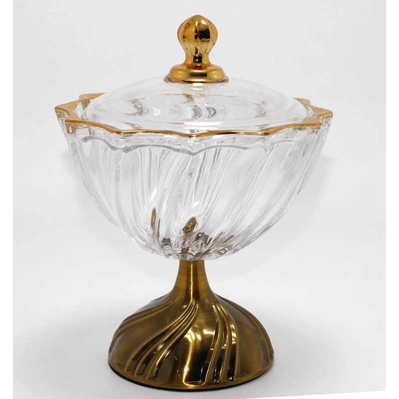 Metal Ayaklı Kristal Cam Şekerlik Gold Detaylı Sunumluk Alk4872