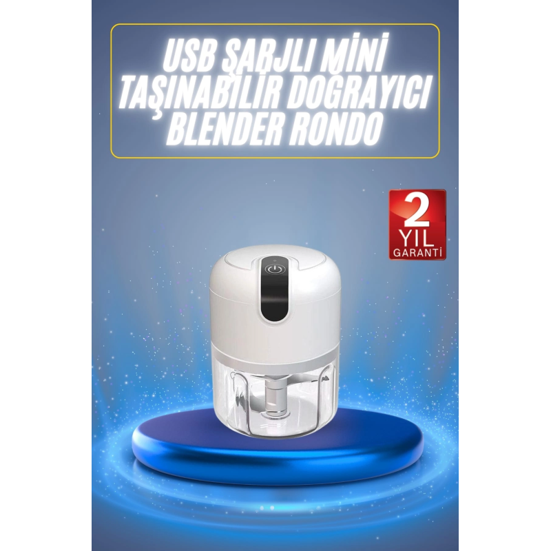 Taşınabilir USB Şarjlı Rondo Blender | Kompakt, Pratik ve Şık Mutfak YardımcısıGünümüzün hızlı yaşam temposuna ayak uydurabilen, hem pratikliğiyle hem de taşınabilirliğiyle öne çıkan USB şarjlı rondo blender; mutfağınızda vazgeçilmez bir yardımcınız olmaya aday. Kompakt boyutları ve zarif tasarımı sayesinde her mutfak dekorasyonuna uyum sağlar ve göz doldurur. Sadece evde değil, ofiste, spor salonunda ya da seyahatlerde bile sağlıklı atıştırmalıklar hazırlamanıza olanak tanır. USB şarj özelliği ile priz bağımlılığını ortadan kaldırarak dilediğiniz her yerde özgürce kullanım imkânı sunar.250 ml kapasiteli haznesi, günlük kullanım için ideal ölçülerde olup, sarımsak, soğan, çeşitli baharatlar ve benzeri küçük malzemeleri saniyeler içinde doğrayarak mutfakta harcadığınız zamanı azaltır. Keskin ve sağlam bıçakları sayesinde güçlü doğrama performansı sunarken, kullanıcı dostu kontrol paneli sayesinde herkes tarafından kolayca kullanılabilir.Rondo blender’ın en dikkat çekici özelliklerinden biri, kolay temizlenebilir parçalarıdır. Kullanım sonrasında zahmetsiz temizlik imkânı sunarak, pratikliğini bir adım öteye taşır. Kompakt yapısı, mutfakta fazla yer kaplamadan düzenli bir görünüm sağlar. Ergonomik tasarımı ve modern çizgileriyle hem fonksiyonel hem de es bir çözüm sunar.Yemek hazırlıklarını keyifli hale getiren bu mini taşınabilir blender, teknolojiyi mutfakla buluşturur. Hem işlevselliği hem de şıklığı bir arada arayan kullanıcılar için mükemmel bir tercihtir. İster günlük kullanım için mutfağınızda, ister dış mekânlarda sağlıklı tarifler hazırlamak için yanınızda taşıyın – bu küçük ama güçlü cihaz, her an elinizin altında olacak.