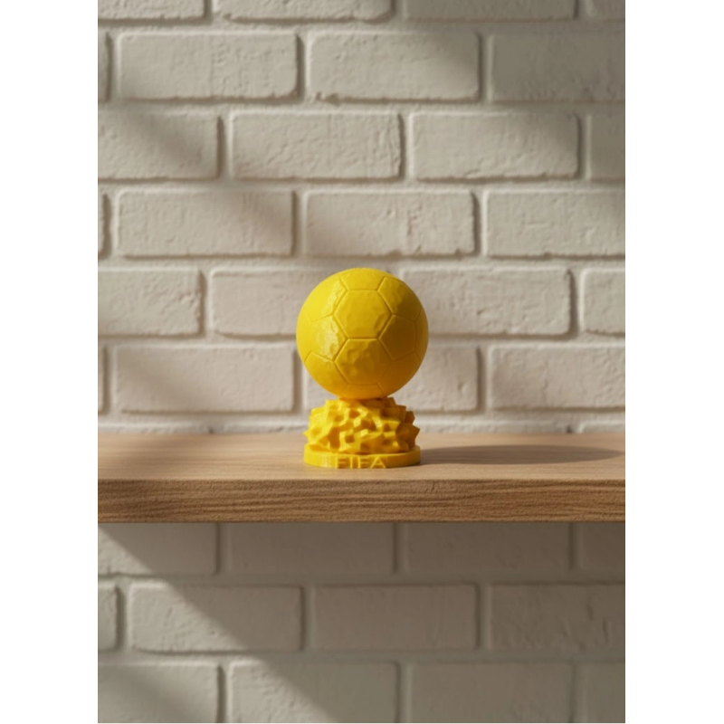 Spor severlerin favorisi olmaya aday Sarı FIFA Topu Biblo, modern çizgileri ve es detaylarıyla bulunduğu mekâna dinamik bir hava katar. 10 cm ölçüsü sayesinde fazla yer kaplamadan dekoratif bir vurgu oluşturur. Çalışma masasında, tv ünitesinde veya ofis raflarında sergilenebilir. Gövdesindeki geometrik detaylar, modern tasarım anlayışını ve sporun enerjisini bir araya getirir. Futbola gönül veren sevdikleriniz için ideal bir hediye seçeneğidir.