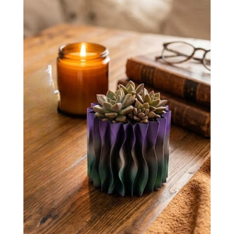 Modern dalgalı tasarımlı mor 3D dekoratif vazo, es görünümü ve özgün formu ile yaşam alanlarında dikkat çeken dekoratif ürünlerden biridir. Dalga formunda tasarlanmış yüzey yapısı sayesinde klasik vazolardan farklı bir görünüm sunar ve bulunduğu ortama modern bir karakter kazandırır. Mor renk tonları ile birleşen bu tasarım hem zarif hem de sanatsal bir dekoratif obje olarak kullanılabilir.3D baskı teknolojisi kullanılarak üretilen bu dekoratif vazo, yüzeyindeki dalgalı form sayesinde ışık ile farklı açılarda farklı gölgeler oluşturarak görsel bir derinlik hissi yaratır. Bu sayede ürün bulunduğu ortamda yalnızca bir vazo değil aynı zamanda dekoratif bir sanat objesi olarak da dikkat çeker. Modern dekorasyon anlayışını yansıtan bu tasarım minimalist ve es dekorasyon konseptleri ile uyumlu bir kullanım sunar.Mor renk dekorasyon dünyasında zarafet ve es ile ilişkilendirilen renklerden biridir. Bu nedenle mor dekoratif vazo özellikle modern ev dekorasyonlarında, minimalist dekorasyon stillerinde ve sanatsal dekorasyon konseptlerinde oldukça şık bir tamamlayıcı aksesuar olarak kullanılabilir.Dekoratif mor 3D vazo özellikle kuru çiçekler, dekoratif dallar veya minimal bitki düzenlemeleri için oldukça uygun bir kullanım sunar. Bunun dışında masa dekoru, raf dekoru veya sehpa üzerinde dekoratif obje olarak da kullanılabilir. Çok yönlü kullanım özelliği sayesinde hem ev dekorasyonunda hem de ofis dekorasyonunda tercih edilebilir.Salon, çalışma odası, kitaplık veya ofis masası üzerinde kullanıldığında bulunduğu ortama es bir atmosfer kazandırır. Modern dekorasyon, minimalist dekorasyon ve sanatsal dekorasyon stilleri ile uyum sağlayabilecek bir tasarıma sahiptir.Modern dalgalı tasarımlı mor 3D dekoratif vazo aynı zamanda dekoratif hediye alternatifi olarak da tercih edilebilir. Ev hediyesi, yeni ev hediyesi veya doğum günü hediyesi olarak oldukça şık bir seçenektir.Es tasarımı ve modern görünümü sayesinde bu dekoratif vazo yaşam alanlarında dikkat çeken şık bir dekoratif aksesuardır.