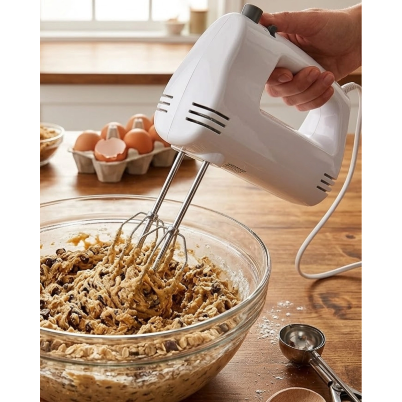 Elektrikli el mikseri, mutfakta hamur ve tatlı hazırlıklarını daha pratik hale getiren kullanışlı bir mutfak cihazıdır. Güçlü motor sistemi sayesinde malzemeleri hızlı ve etkili şekilde karıştırabilir.250W motor gücü sayesinde farklı karıştırma işlemleri rahat şekilde yapılabilir. Kek hamuru, krema, sos ve yumurta çırpma gibi işlemler için oldukça ideal bir kullanım sunar.5 kademe hız ayarı sayesinde tariflere uygun hız seviyesini seçebilirsiniz. Bu özellik farklı yoğunluktaki karışımlar için daha kontrollü bir kullanım sağlar.Paslanmaz çelik çırpma atları dayanıklı yapısı sayesinde uzun süre kullanılabilir. Çift çırpıcı sistemi malzemelerin eşit şekilde karışmasını sağlar.Aksesuar çıkarma düğmesi sayesinde çırpıcı atları kolay şekilde çıkarılabilir ve temizlenebilir.Kompakt tasarımı sayesinde mutfakta fazla yer kaplamaz ve kolayca saklanabilir.
