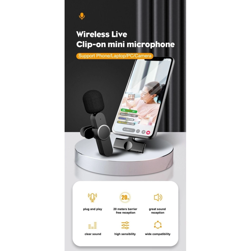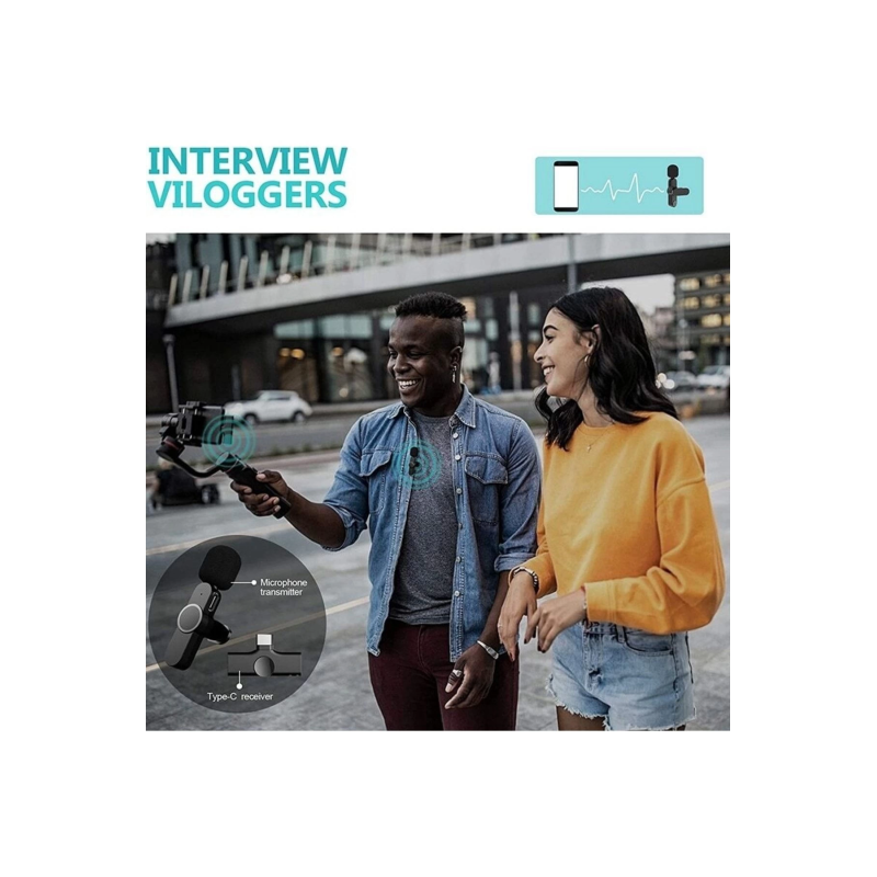 Youtube/facebook live, tiktok creators, vlogger, blogger, podcasters, interviewers ve diğer video kayıt tutkunları için tasarlanmış iphone telefon kablosuz mikrofon kaydı için kablosuz yaka mikrofonu.