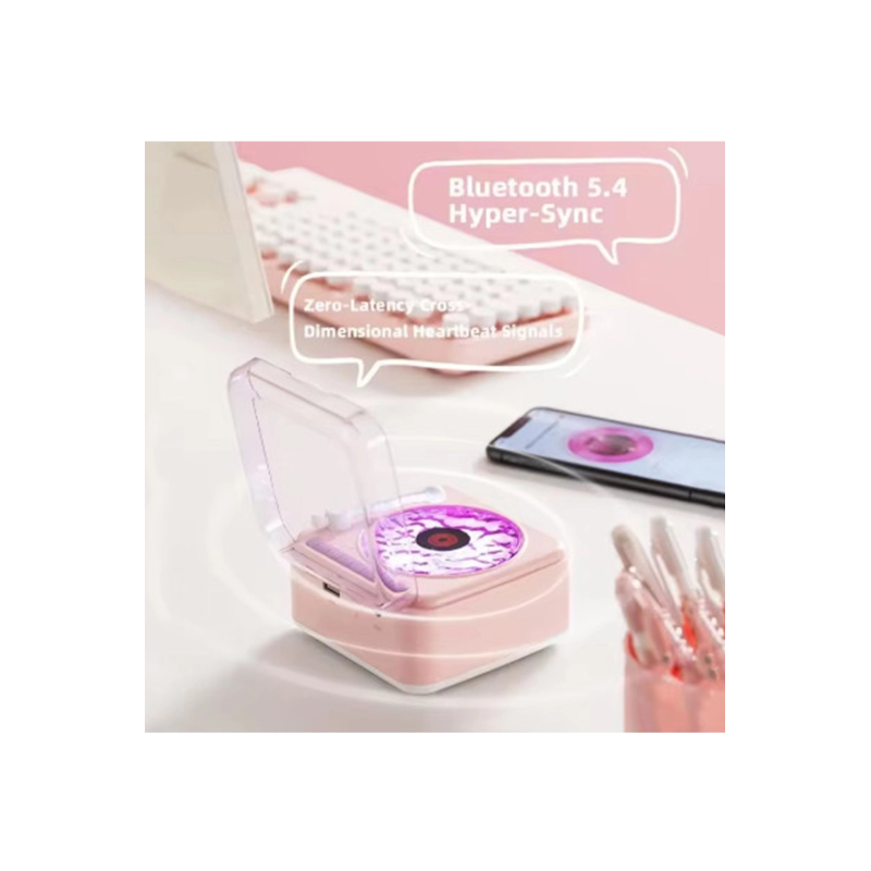 Nostalji Mini Plak Görünümlü Radyolu Bluetooth Hoparlör 3d Ses Dalgası Retro Müzik Plak Pembe