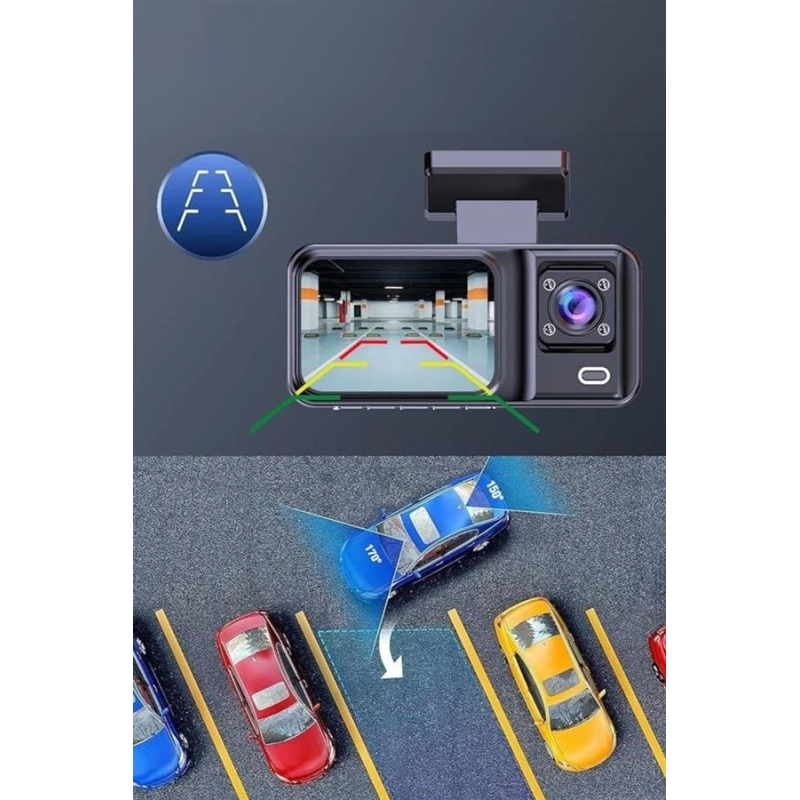Bu çok kameralı araç içi güvenlik sistemi, hem gündelik kullanımda hem de uzun yolculuklarda kapsamlı kayıt imkanı sunarak sürüş deneyiminizi daha güvenli hale getirir. Sistem; biri ön, biri iç, biri de arka olmak üzere toplam üç adet kameradan oluşur. Tüm kameralar aynı anda kayıt yak aracın çevresindeki her açıdan görüntüleri kaydeder. Bu sayede sadece trafikte değil, park halindeyken de tam kontrol sizde olur.Ön kamera 1080P Full HD çözünürlükte yüksek kaliteli görüntüler sunarken, iç ve arka kameralar 720P çözünürlükle netlikten ödün vermeden destek sağlar. 2 inç IPS ekranı, kayıtları canlı olarak takip etmenizi sağlarken, 170 derece geniş açı desteğiyle geniş bir görüş alanı sunar. Geri vitese geçildiğinde park çizgileri otomatik olarak ekrana yansır ve arka kamera devreye girer; bu özellik park sırasında büyük kolaylık sağlar. Ayrıca arka kamera ürünle birlikte hediye olarak sunulmaktadır.64 GB’a kadar hafıza kartı desteği sayesinde uzun süreli video kaydı yapılabilir. Döngüsel kayıt özelliğiyle eski videolar otomatik olarak silinerek yenilerine yer açılır, böylece sürekli manuel müdahale gerekmez. G-sensör teknolojisi, araç park halindeyken bile ani bir çarpma, darbe veya cam kırılmasını algılayarak otomatik kayıt başlatır ve olay anlarını kaçırmadan kaydeder.Ergonomik tasarımı ile görüş açınızı etkilemeden kolayca monte edilebilir. Es duruşu ve kompakt yapısıyla aracınızın iç tasarımına uyum sağlar. Sürüş güvenliğini üst seviyeye taşımak isteyen kullanıcılar için ideal bir çözümdür.