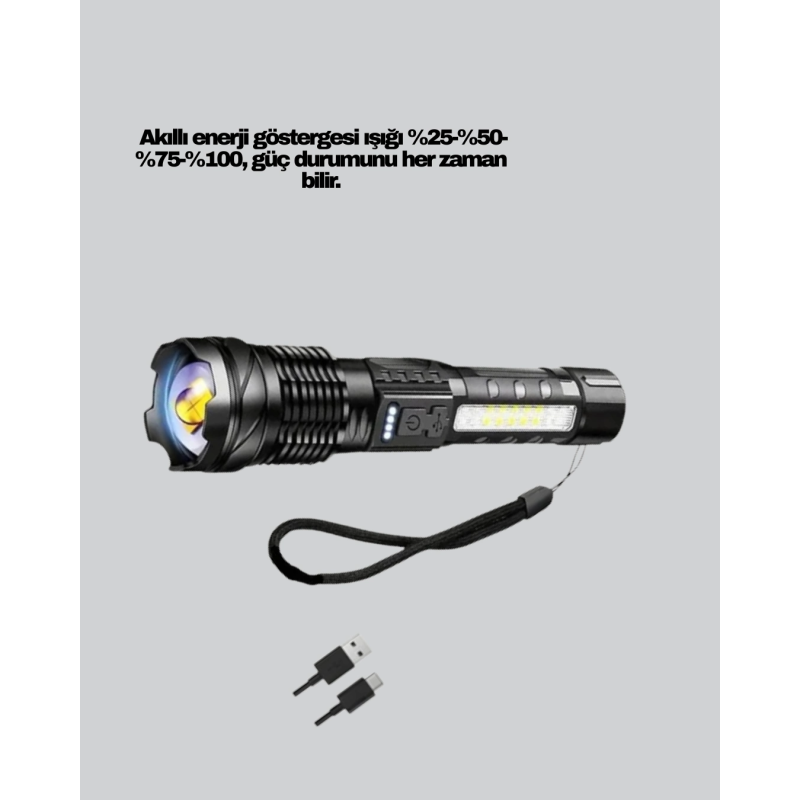 Şarj edilebilir LED el feneri, yüksek ışık kapasitesi ve pratik kullanımı ile öne çıkar. Uzun menzilli aydınlatma özelliği sayesinde geniş alanları rahatlıkla aydınlatır. Yan aydınlatma özelliği ile çok yönlü kullanım sunar.Ergonomik tasarımı sayesinde elde rahatça tutulur. Evde, araçta veya dış mekanda güvenle kullanılabilir. Güçlü, pratik ve fonksiyonel bir aydınlatma ürünüdür.