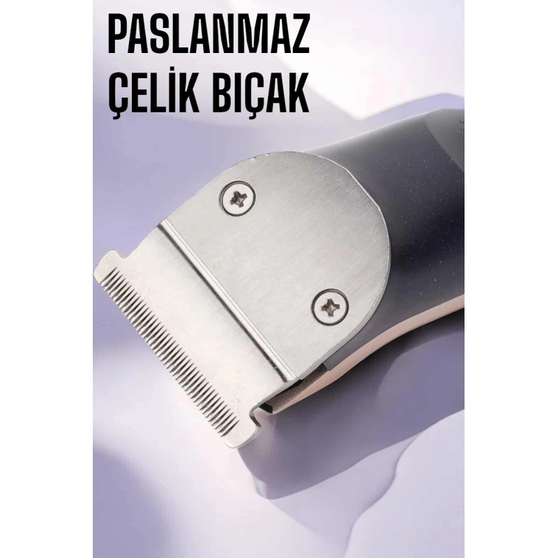 Profesyonel şarjlı saç ve sakal traş makinesi, hem kadınlar hem de erkekler için kişisel bakımda güvenilir bir yardımcıdır. Keskin ve dayanıklı çelik bıçakları, saç ve sakal kesiminde hassasiyet sağlar. Türkiye’nin en çok tercih edilen kuaför kesim makinelerinden biri olan bu cihaz, güçlü motoruyla etkileyici bir performans sunar.Şarjlı yapısı sayesinde kablosuz kullanım rahatlığı sağlar. Ayarlanabilir tarak başlıkları, saç ve sakalda 03 mm’den 12 mm’ye kadar farklı uzunluklar elde etmenizi mümkün kılar. İster günlük bakım için kısa bir kesim, ister stilize bir sakal şekillendirme… Bu traş makinesi ile hepsini kolayca yapabilirsiniz.Cihaz, bakım ve temizlik için oldukça kullanıcı dostudur. Sessiz çalışan motoru ve ergonomik tasarımıyla, kullanım sırasında maksimum konfor sunar. Paket içeriğinde yer alan temizleme fırçası ve bakım yağı ile uzun ömürlü bir kullanım garanti edilir. Şarj adaptörü sayesinde kısa sürede dolan batarya, cihazınızı her zaman hazır tutar.