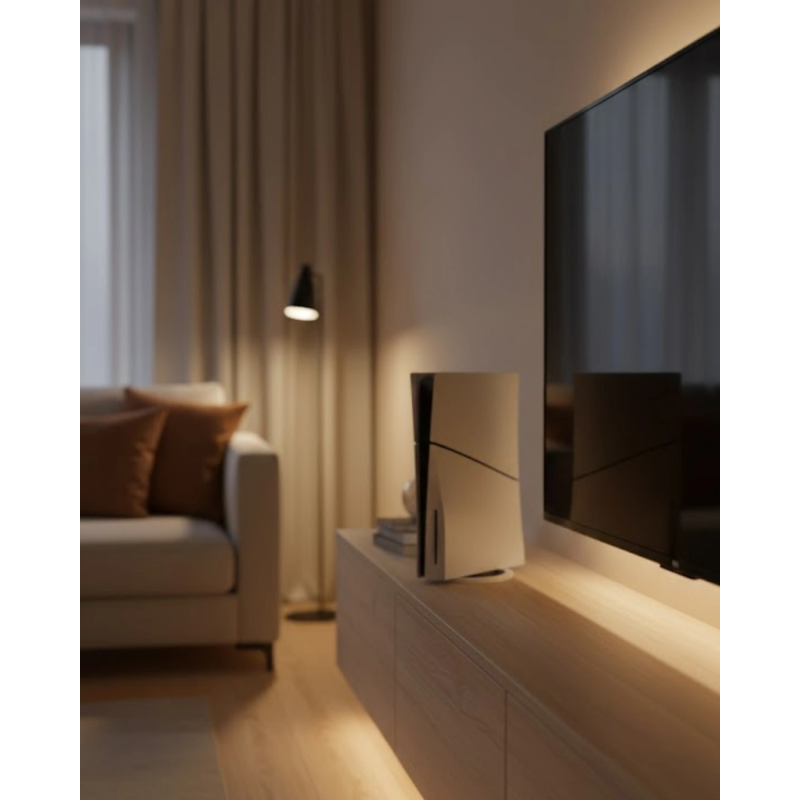 Konsol tutucu stand, oyun alanlarında düzen ve es arayanlar için tasarlanmıştır. Dikey konumlandırma sayesinde konsolunuzu güvenli bir şekilde sergilemenizi sağlar. Masa, raf veya TV ünitesi üzerinde rahatlıkla kullanılabilir. Şık ve minimal yapısı sayesinde hem salon hem de oyun odası dekorasyonuna uyum sağlar. Kullanışlı ve düzenleyici bir aksesuardır.