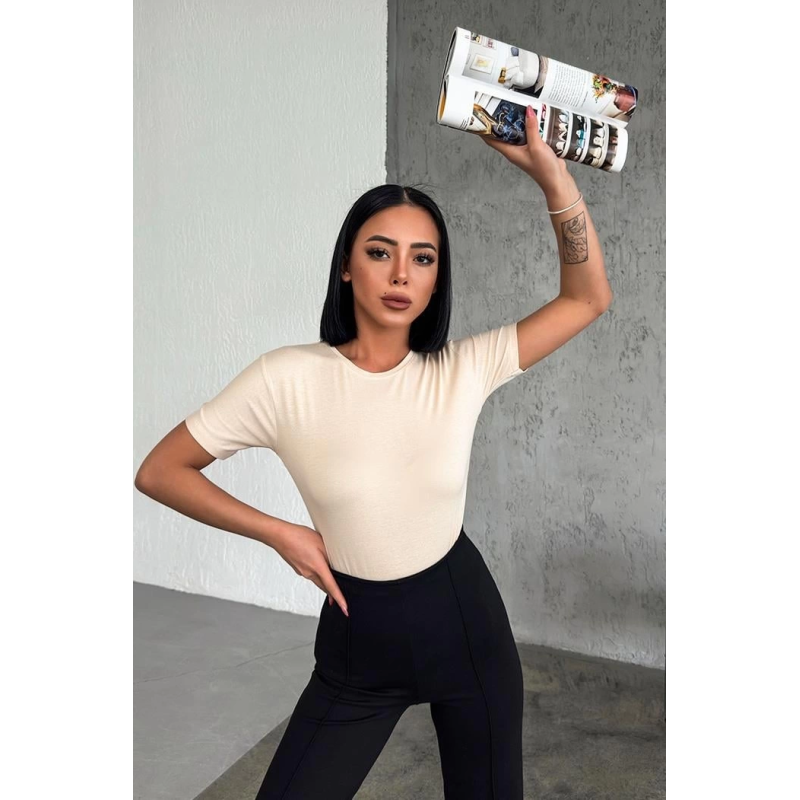 Rahat Ve Şık Kısa Kollu Bisiklet Yaka Likralı Viskon Penye Body Bej