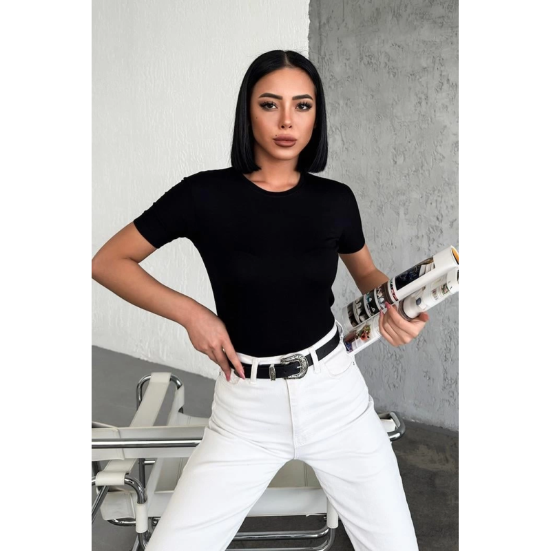 Rahat Ve Şık Kısa Kollu Bisiklet Yaka Likralı Viskon Penye Body Siyah