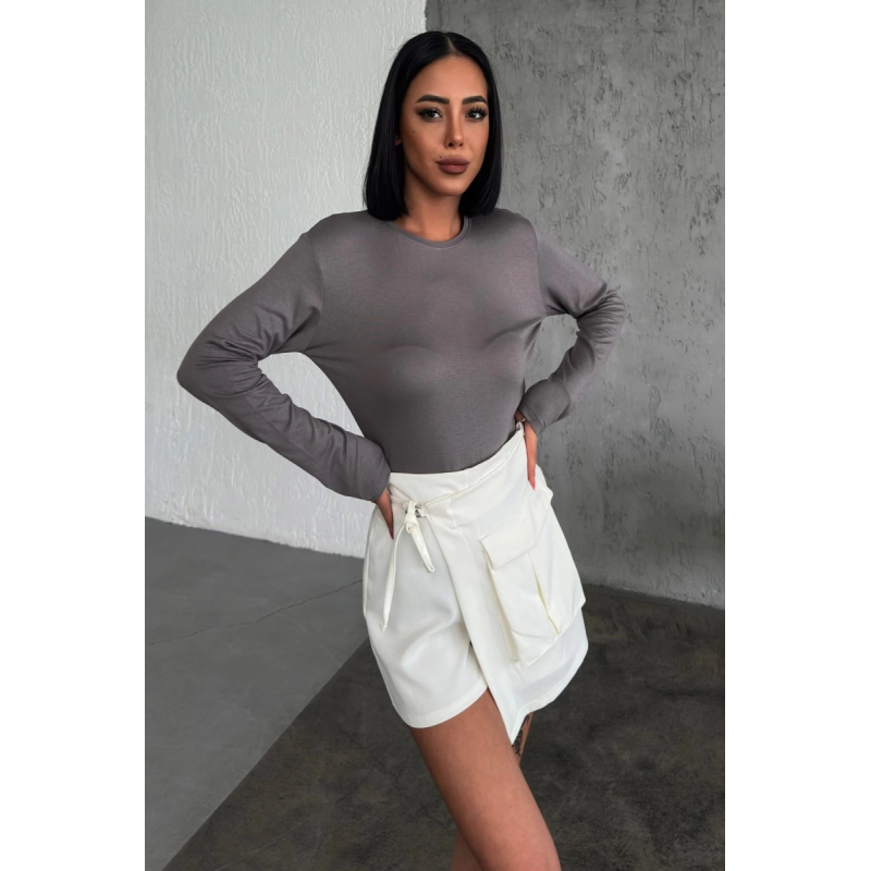 -Öncelikle, bu body'nin füme rengi her türlü kombinasyonla mükemmel uyum sağlar. Fümenin zamansız şıklığı ile her mevsim ve her durumda tarzınızı yansıtabilirsiniz. Uzun kollu tasarımı, serin havalarda sizi sıcak tutarken, bisiklet yaka detayı da hafif bir zarafet katarak görünümünüzü tamamlar.
